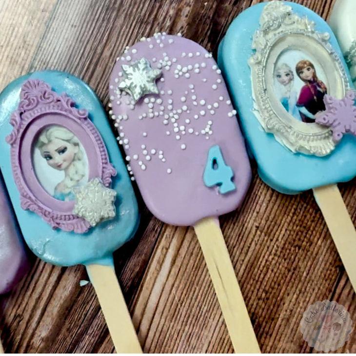 Celebrate the magic of winter with our enchanting Frozen themed cakesicles.
